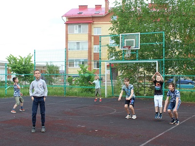 Ребята возраста 7-12 лет с удовольствием соревновались на спортивной площадке Детской деревни в эстафетах, которые провели тренер Анастасия Клюшина и семейная помощница Лариса Протасова.